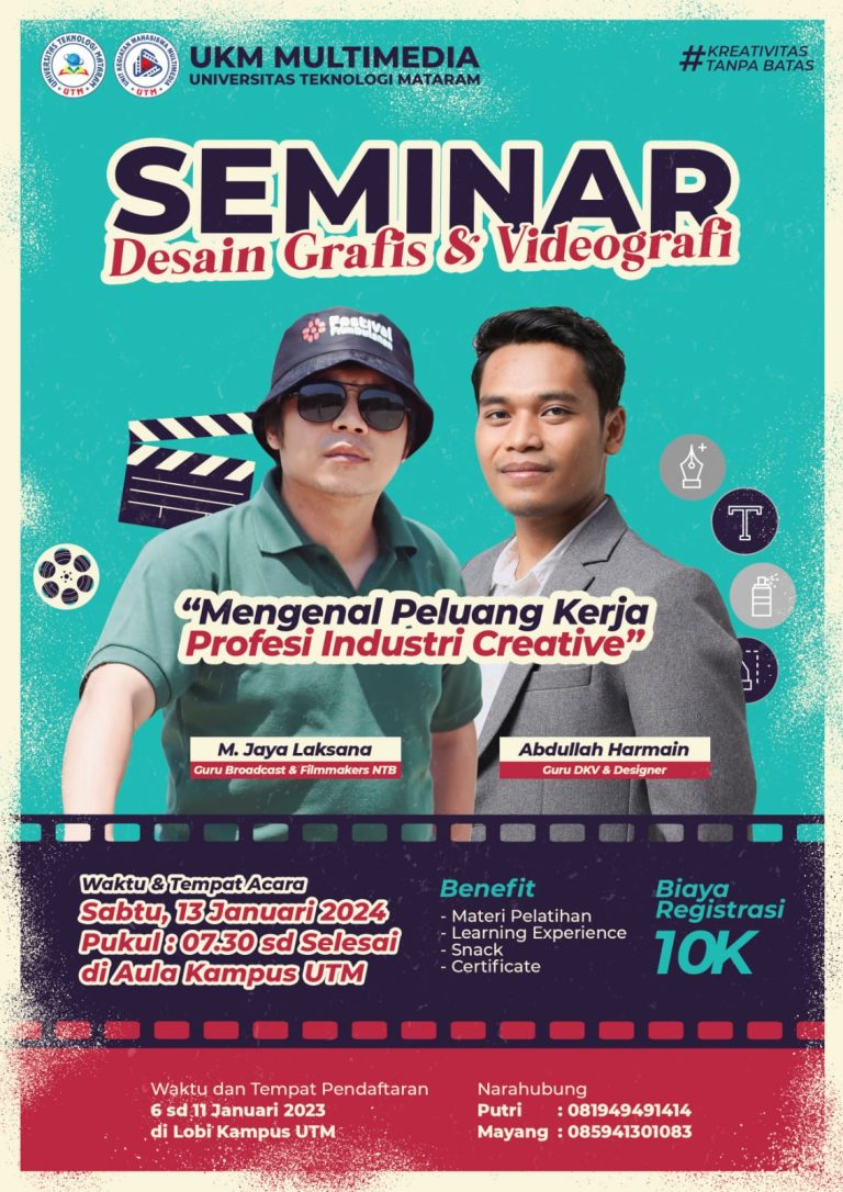 Universitas Teknologi Mataram mengadakan Seminar Desain Grafis Dan Videografi.